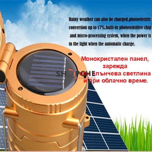 Този соларен къмпинг фенер е влаго защитен, за използване при външни условия.