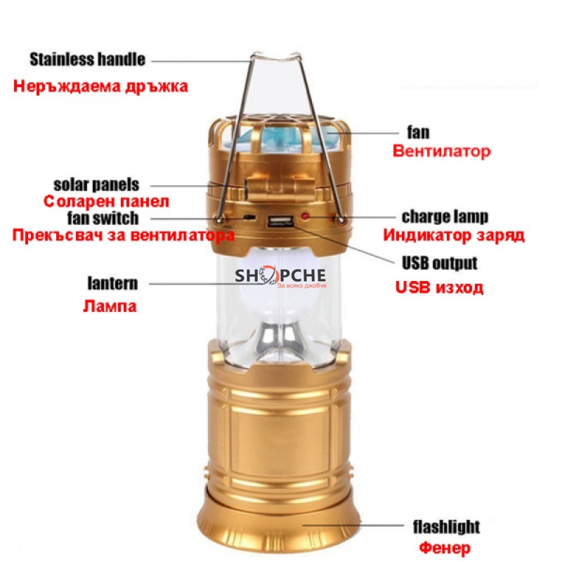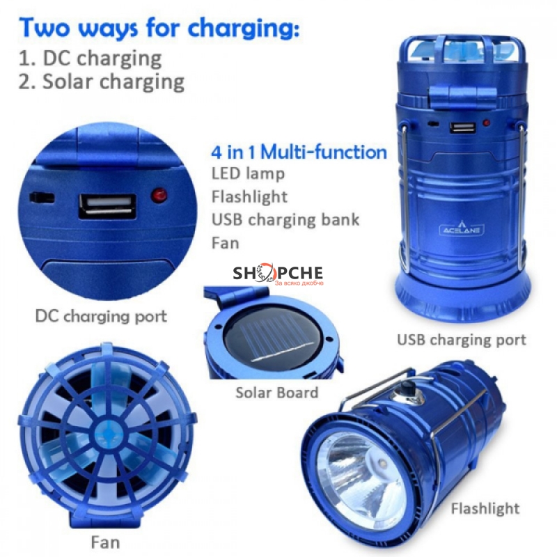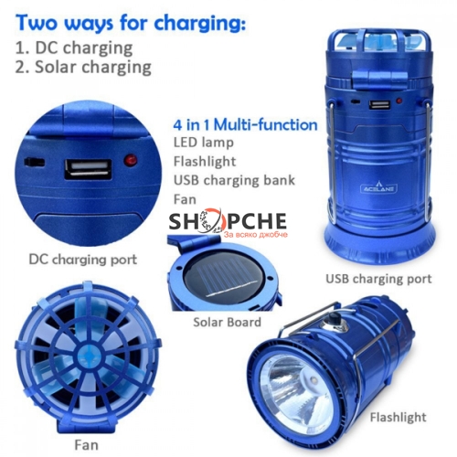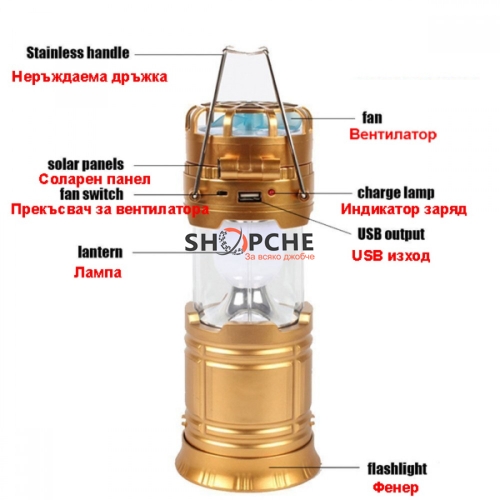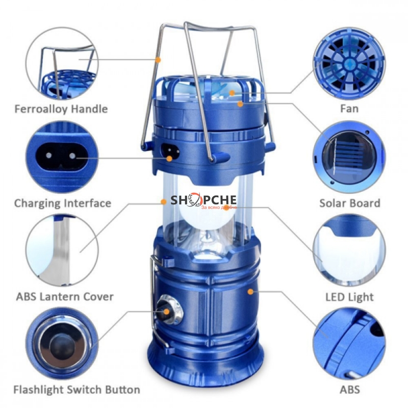 👉 Присъедини се към Viber общносттаСоларен LED туристически фенер с вентилтор