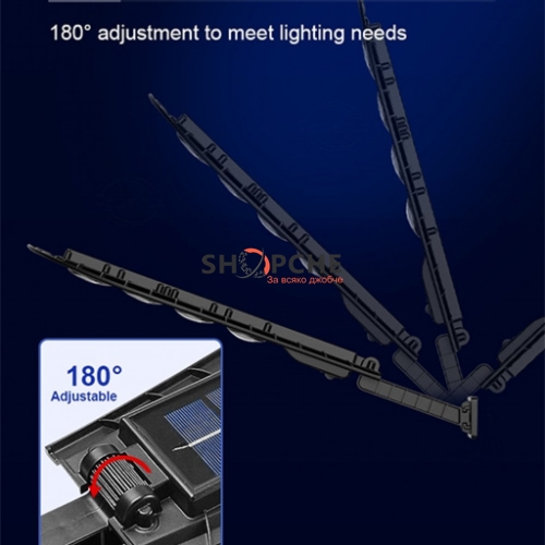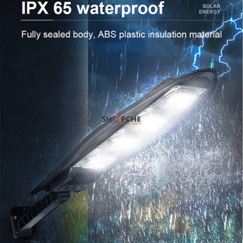 👉 Присъедини се към Viber общносттаКобра LED Соларна улична лампа 4 COB, 3 режима на работа, сензор за движение и дистанционно управлени Тази соларна лампа, има 3 режима на работа:Режим 1 - Активира се при движение в тъмнина за около 15-20 секунди, след което загасва.Режим 2 - Постоянна светлина 30% от мощността й в тъмнина, дори без движение, а при движение усилване на 100% за около 15-20 секунди.Режим 3 - Постоянна светлина 30% от мощността й в тъмнина за цяла нощ.