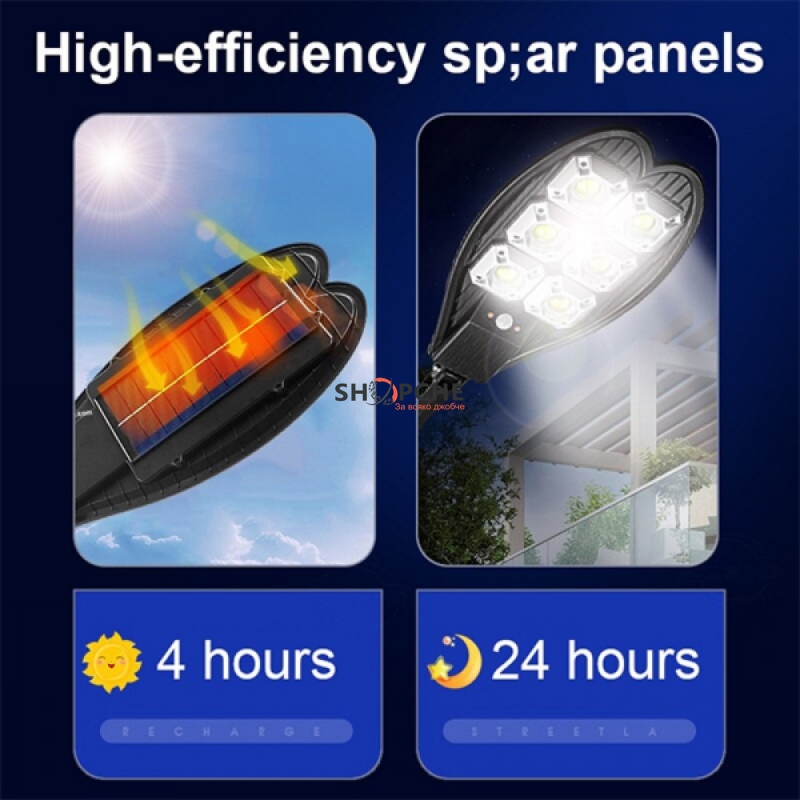 👉 Присъедини се към Viber общносттаКобра LED Соларна улична лампа 6 COB, 3 режима на работа, сензор за движение и дистанционно управлени
