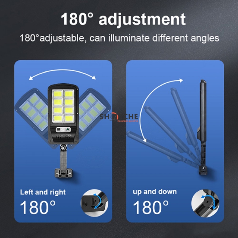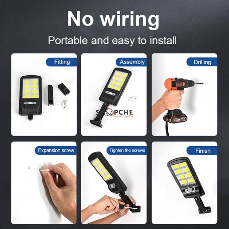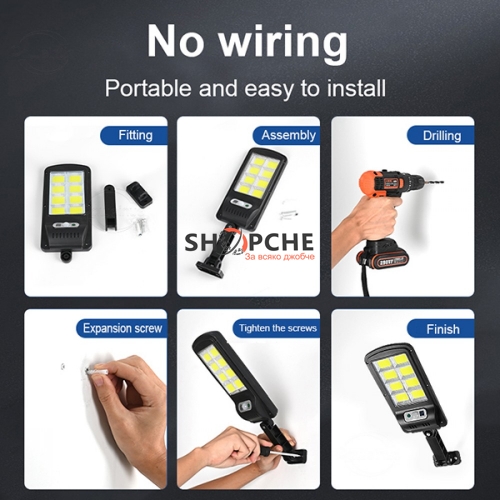 👉 Присъедини се към Viber общносттаLED Соларна улична лампа 8 COB, 3 режима на работа, сензор за движение и дистанционно управление