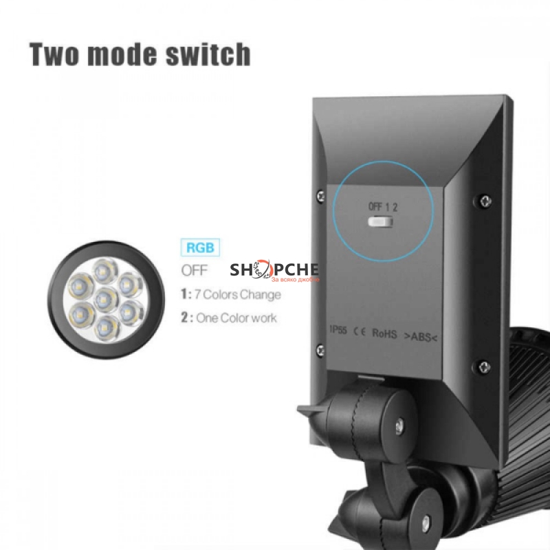 Насочен многоцветен соларен прожектор с 7 светодиода