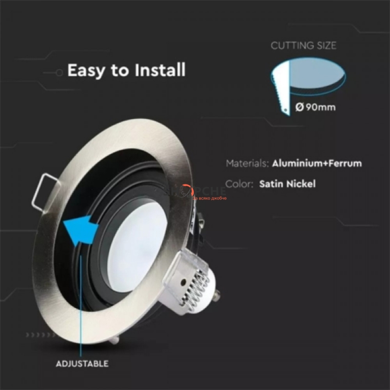 Монтажни размери: Ø90 мм