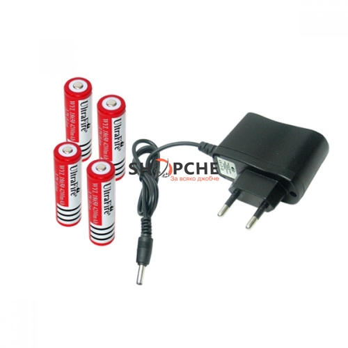 Захранване : 4броя акумулаторни батерии 3,7V 18650 литиево- йонни / включени в комплекта
