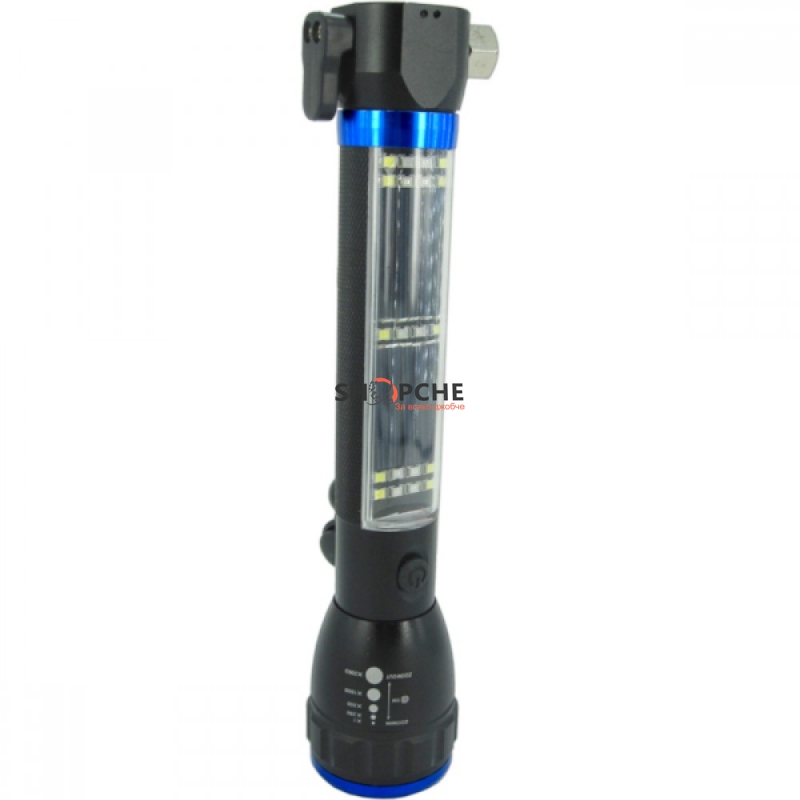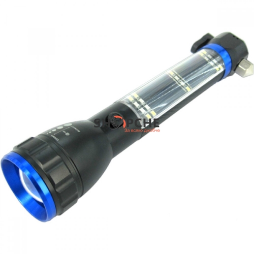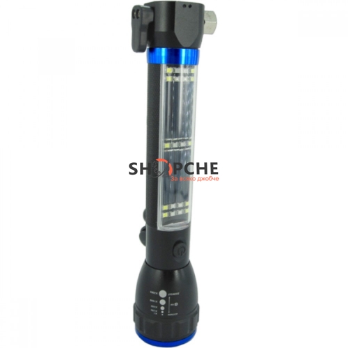 Функция аварийна ситуация : В долния край на фенера от едната страна е разположен чук, с който лесно може да разбиете прозорец на кола. От другата страна - режачка, с която лесно и бързо може да прережете предпазния колан при извънредни ситуации.