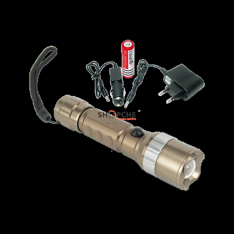 Фенерът има два адаптера. Малък адаптер на променлив ток AC 220V 4,2V 500mA и DC адаптер за кола 12V 4,2V .Използва една 18650 литиево-йонна батерия 3.7v 4200mAh, в същото време към комплекта има капсула за батерии 3 броя х 3ААА -осигуряват допълнително удобство