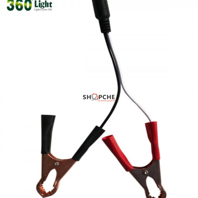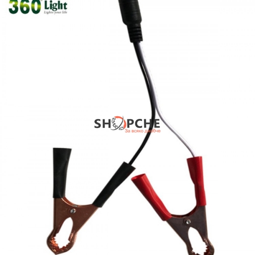 Може да се захранва по 2 начина: през щекер запалка 12V в колата или с щипки директно към 12V акумулатор.