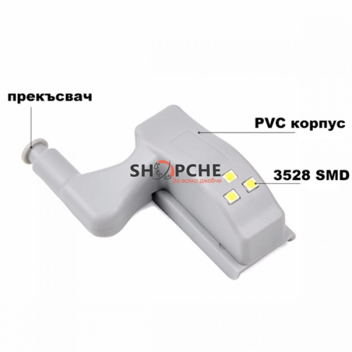 При затваряне на шкафа, вратата натиска бутона и светлината се изключва.