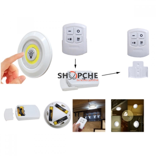 Лесен монтаж: чрез залепваща лепенка на задната страна на лампите. Залепваща поставка на дистанционното управление