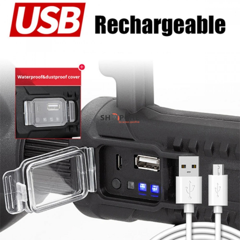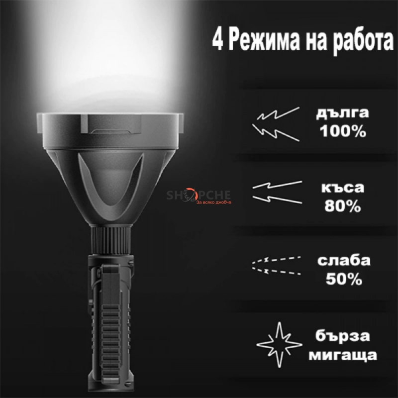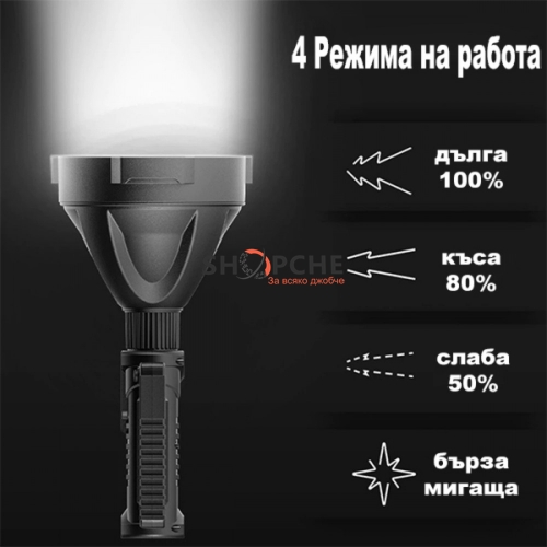 👉 Присъедини се към Viber общносттаАкумулаторен далекобоен насочен LED прожектор 20W 1500м 90000LM 6400K