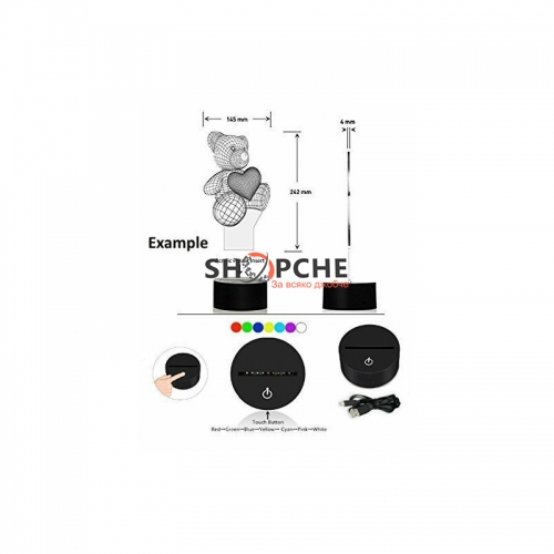 👉 Присъедини се към Viber общносттаУникална 3D LED нощна лампа, с подсветка . Насладете се на 3D ефекта, който ще създаде допълнителен уют в дома ви. Благодарение на палитрата от цветове лесно може да се съчетае с вашият интериор. Идеална за подарък на любим човек или приятел.