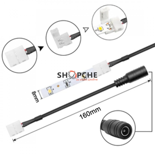 👉 Присъедини се към Viber общносттаСъединител за светодиодна лента със захранваща буска 5,5х2,1ммм