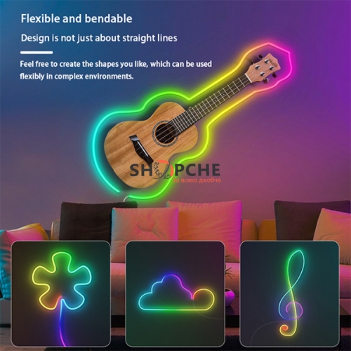👉 Присъедини се към Viber общносттаСъздайте модерна и цветна атмосфера с тази IC-RGB LED неонова лента с дължина 5 метра. Благодарение на индивидуално адресируемите LED диоди, лентата предлага динамични ефекти – плавни цветови преходи, бягаща светлина, синхронизация с музика, таймер и регулиране на яркост и скорост.