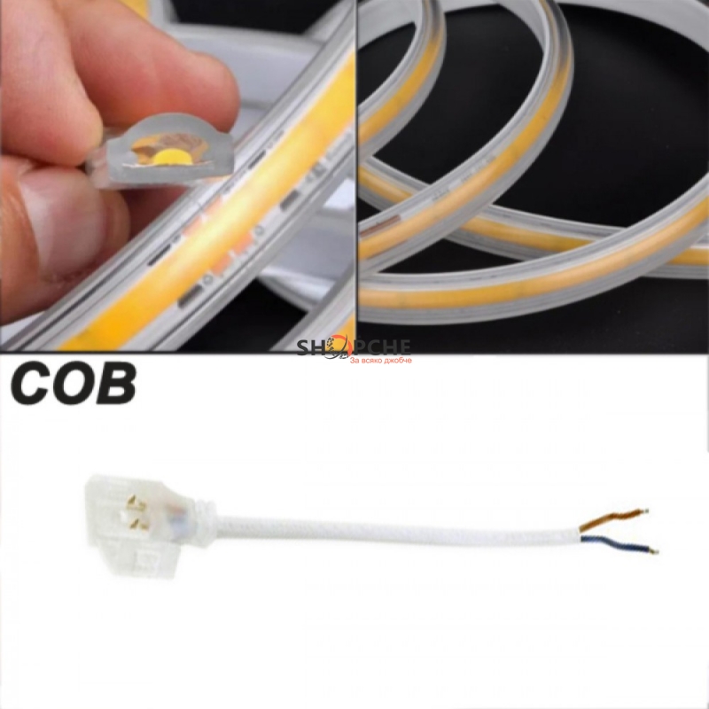 👉 Присъедини се към Viber общносттаТози захранващ конектор е специално проектиран за свързване на COB LED ленти с напрежение 220V и ширина 10mm. Той осигурява надеждна и ефективна връзка за директно захранване на LED лентата от източник с променлив ток 220V.