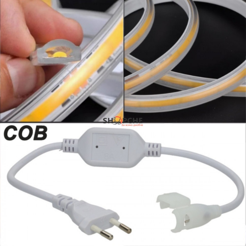 👉 Присъедини се към Viber общносттаЗахранващ кабел за LED COB 240 LEDs, 10W, 220V водоустойчива светодиодна лента