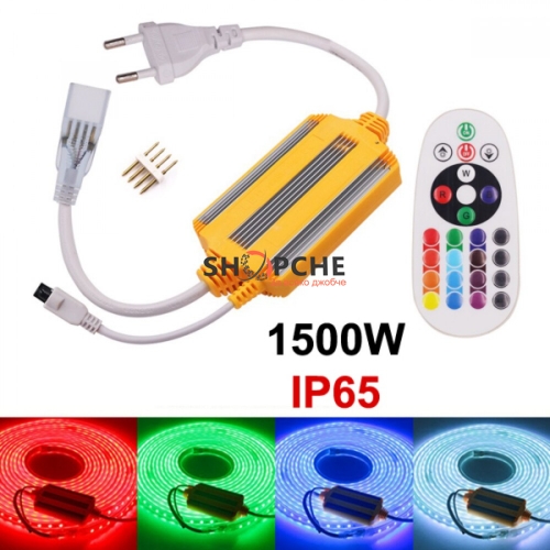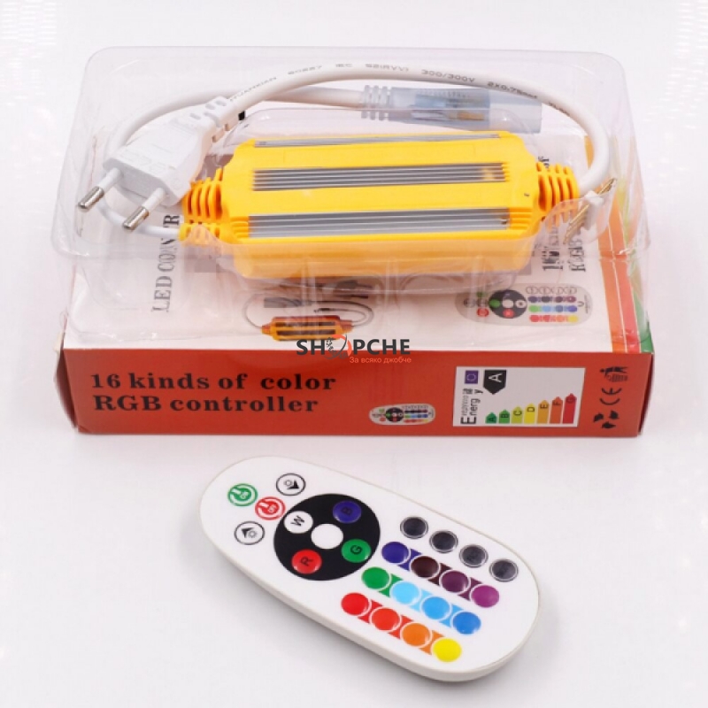 Контролер за RGB 5050 светодиодна лента 220V (60 LED/м.), лесен и удобен за монтаж. През този контролер Ви можете да изберете по отделно световете, яркостта, различни програми за редуване на световете и бързината им.