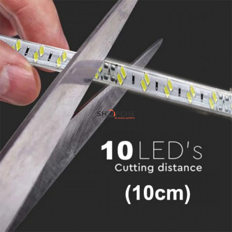 Тази светодиодна лента е проектирана и изработена по начин, който позволява да бъде прекъсвана на 10 см от общата и дължина. Прекъсването се извършва на обозначените места, като спазвате маркировката.