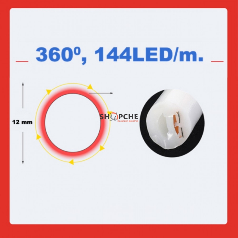 Тази светодиодна лента е проектирана и изработена по начин, който позволява да бъде прекъсвана на всеки един метър от общата и дължина. Прекъсването се извършва на обозначените места, като спазвате маркировката.