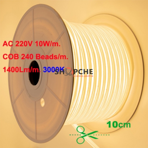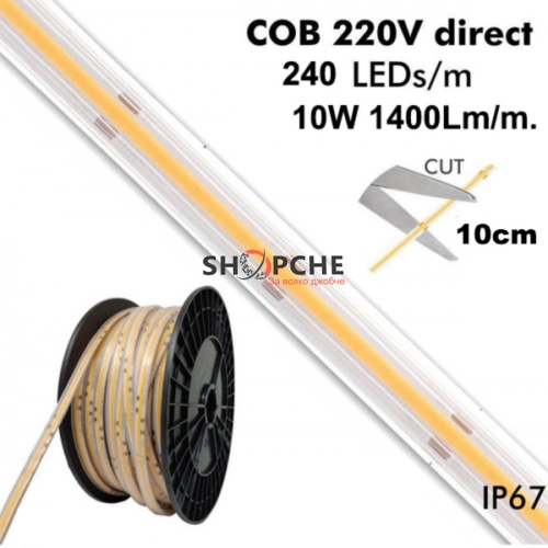 👉 Присъедини се към Viber общносттаLED COB Лента 240 LEDs, 10W, 220V, 3000K, 1400Lm, IP65 - Идеално Осветление за Вътрешни и Външни Пространства