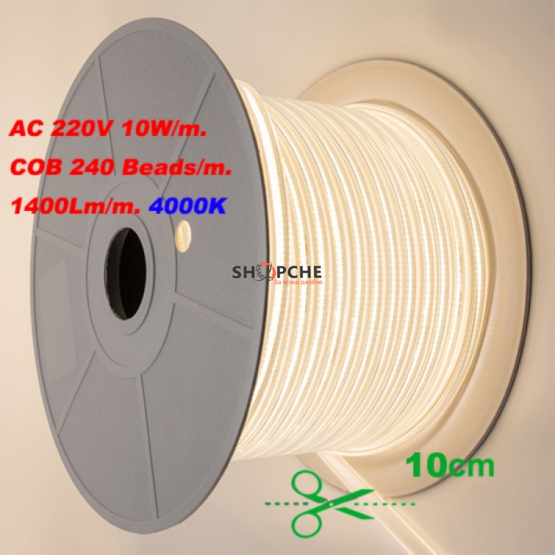 👉 Присъедини се към Viber общносттаLED COB Лента 240 LEDs, 10W, 220V, 4000K, 1400Lm, IP65 - Идеално Осветление за Вътрешни и Външни Пространства