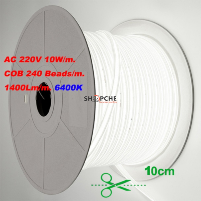👉 Присъедини се към Viber общносттаLED COB Лента 240 LEDs, 10W, 220V, 6400K, 1400Lm, IP65 - Идеално Осветление за Вътрешни и Външни Пространства