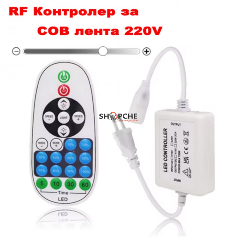 👉 Присъедини се към Viber общносттаУправлявайте лесно и удобно вашата COB LED лента 220V с помощта на този RF контролер с дистанционно управление. Подходящ за дома, офиса, витрини и декоративно осветление, той ви дава пълен контрол върху яркостта, скоростта на светлинните ефекти и режима на работа.