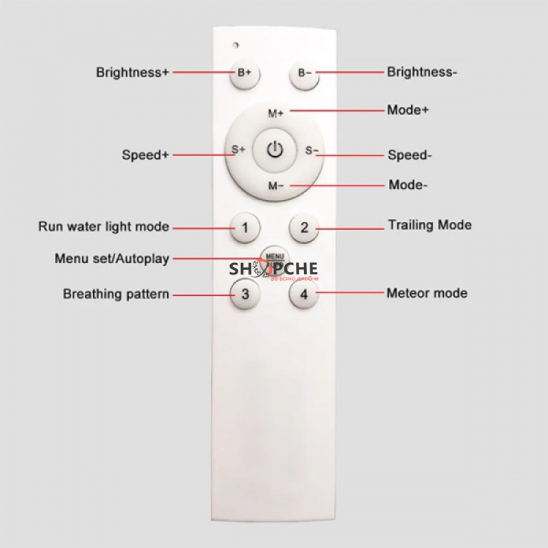 Дистанционно разстояние до 15M на открито, захранва се с 2бр. ААА батерия (включени)