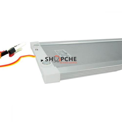 За постигане максимален ефект на осветеност, лицевата част е покрита с двупластов матов дифузер , зад който е разположено армирано стъкло целящо да отблъсква светлината изцяло в рефлекторната част на панела. Със своята консумация от 4W /0.0.33А/ това осветително тяло се превръща в най-доброто решение за осветление, там където няма достъп до ел.мрежа. Лесен за инсталиране, с щипки за директно включване на 12v