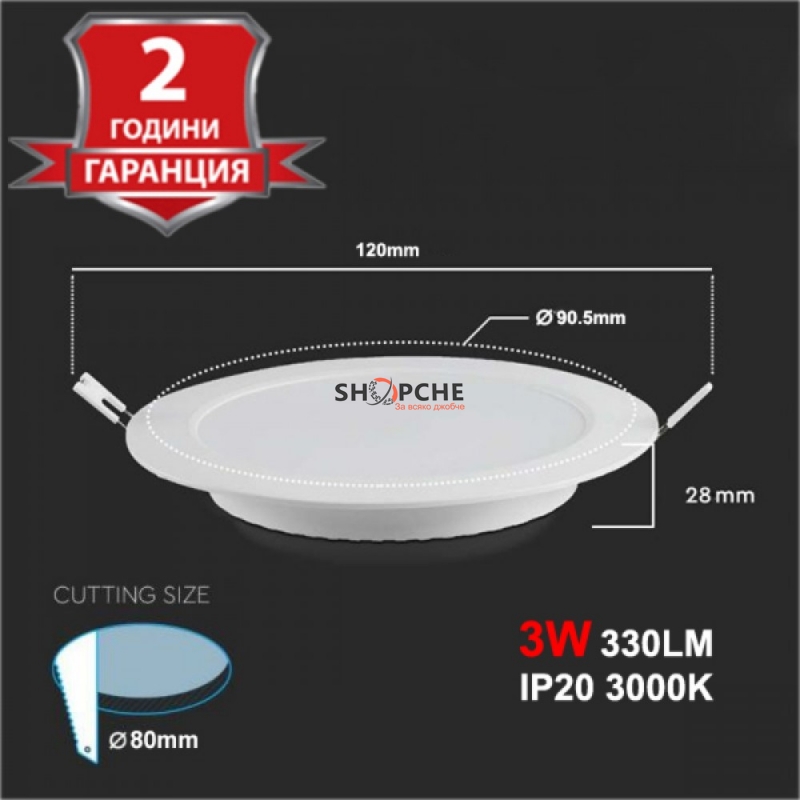 Монтажен размер: Ø80 мм.