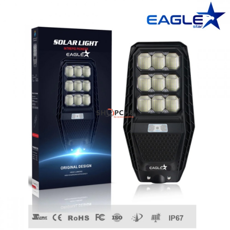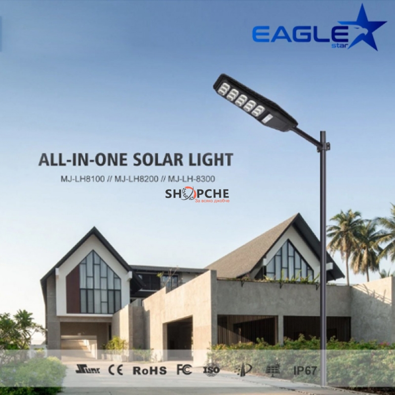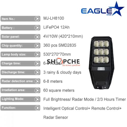 👉 Присъедини се към Viber общността100W 360 LED Соларна улична лампа с дистанционно и датчик за движение 6400К