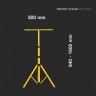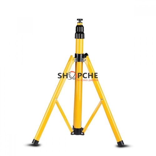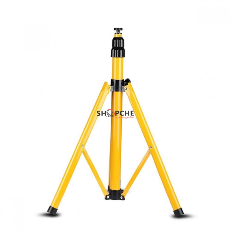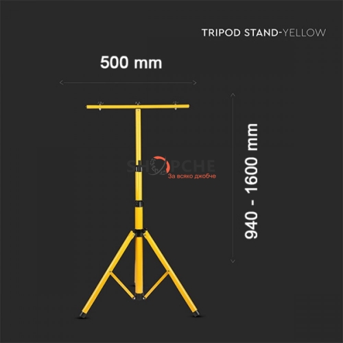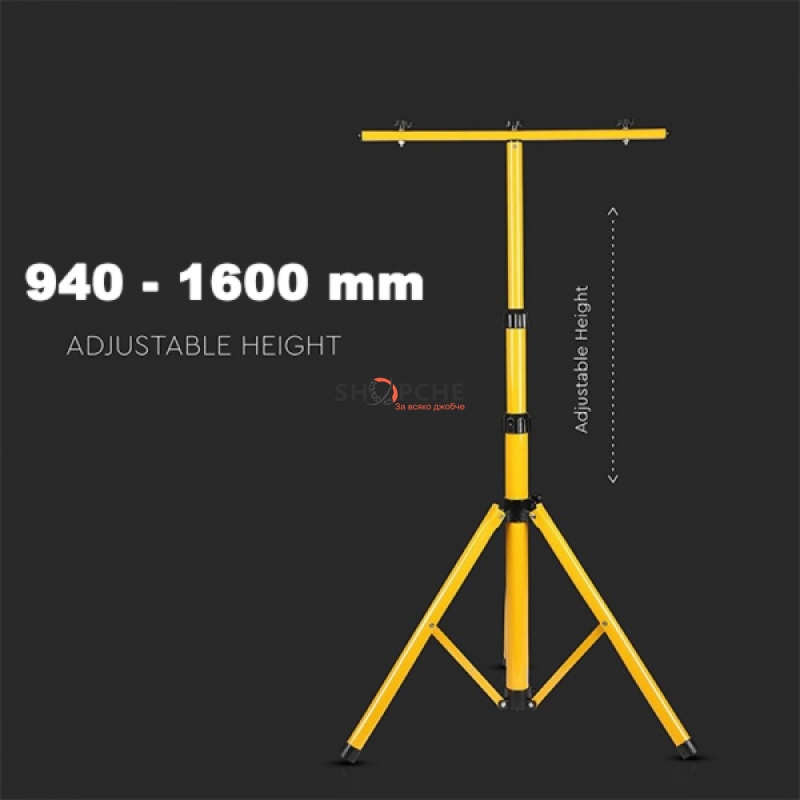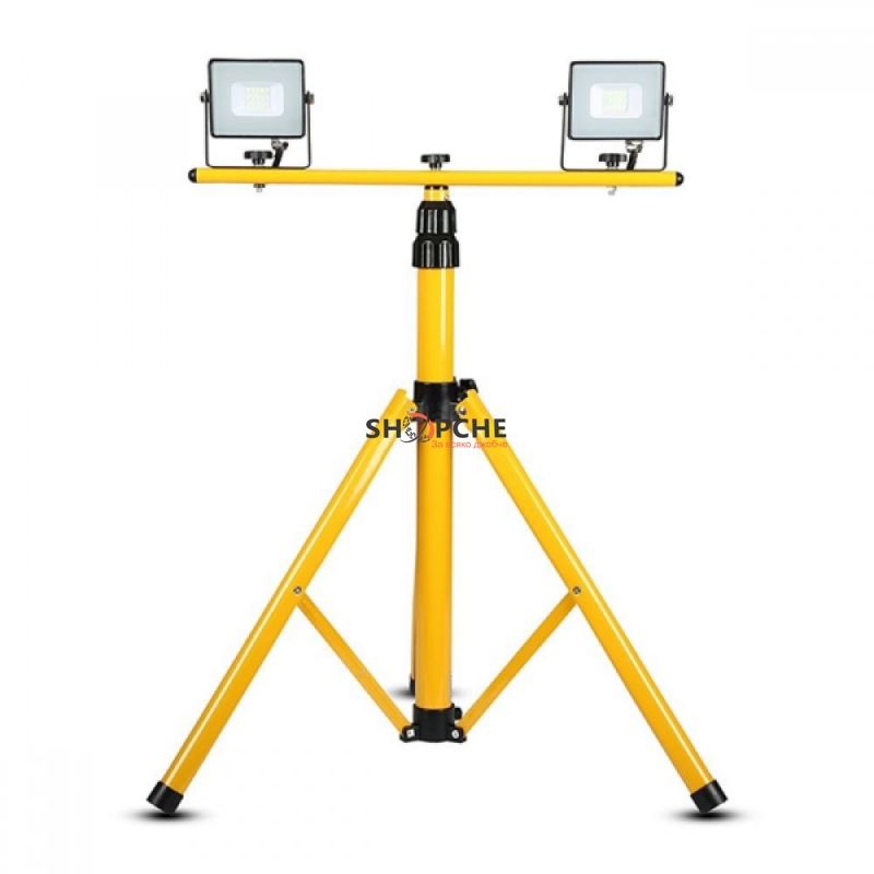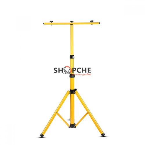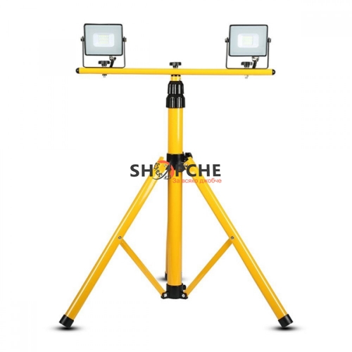 👉 Присъедини се към Viber общносттаЗдрав и стабилен статив за прожектори, изработен от висококачествен метал с прахово боядисано покритие в жълт цвят. Предназначен за монтаж на един или два LED прожектора, подходящ за строителни обекти, работилници, гаражи и други места, където е необходимо мобилно и надеждно осветление.