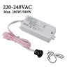 Сензорът е вграден тип, с лесен монтаж и стандартно захранване от 220V. Работи с LED консуматори до 200W и халогенни – до 500W, което го прави подходящ за различни видове осветление.