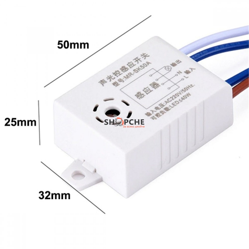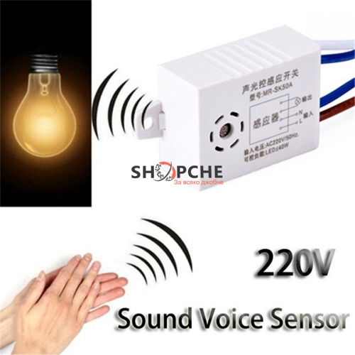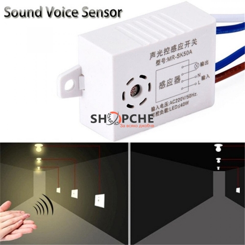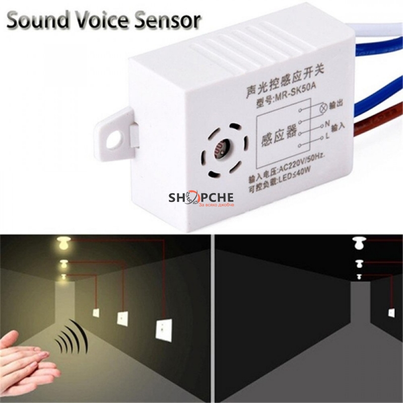 Може да се управлява от всеки звук , работи в тъмна среда, например през нощта. Ако сензорът почувства звук, контролираната лампа ще светне за около 45 секунди.