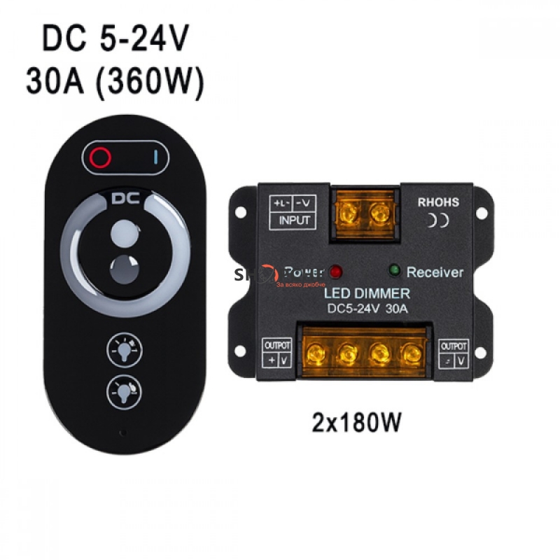👉 Присъедини се към Viber общносттаУправлявай осветлението с прецизност и стил с този Touch димер за едноцветна LED лента, създаден за максимално удобство и ефективност. Подходящ за LED ленти с напрежение от 5 до 24 волта, димерът предлага обща мощност 360 вата – 2 канала по 180 вата, което осигурява равномерно и стабилно управление на по-големи осветителни зони.