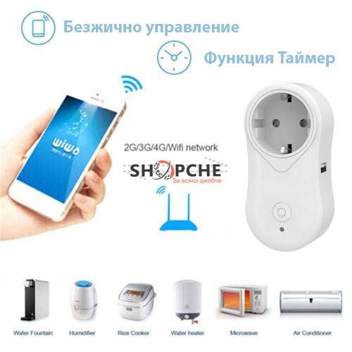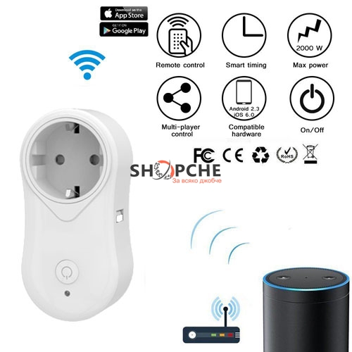 Смарт контакта е предназначен да управлява вашите електроуреди отдалечено посредством безжичната ви връзка за интернет WiFi.
