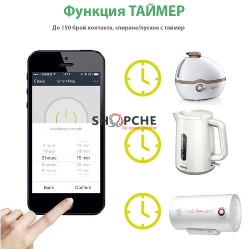 👉 Присъедини се към Viber общносттаУредът позволява дистанционен контрол на Вашите включени в него уреди от всяка точка на света и може да измерва консумираната от тях електроенергия и да изчислява съответния разход (монитор на потреблението – функция “електромер”). Достатъчно е да настроите смарт контакта към Вашия домашен Wi-Fi рутер, след което можете да го управлявате бързо и лесно отвсякъде през интернет от Вашия смартфон чрез специалното безплатно приложение.