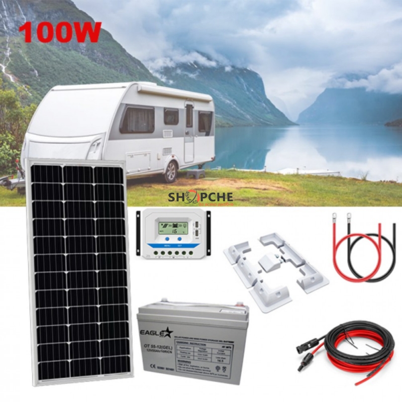 👉 Присъедини се към Viber общносттаKомбинация от компоненти за соларна система 100W е предназначене за захранване на основни консуматори в кемпер или каравана, като осветление, зарядни устройства и малки електрически уреди.