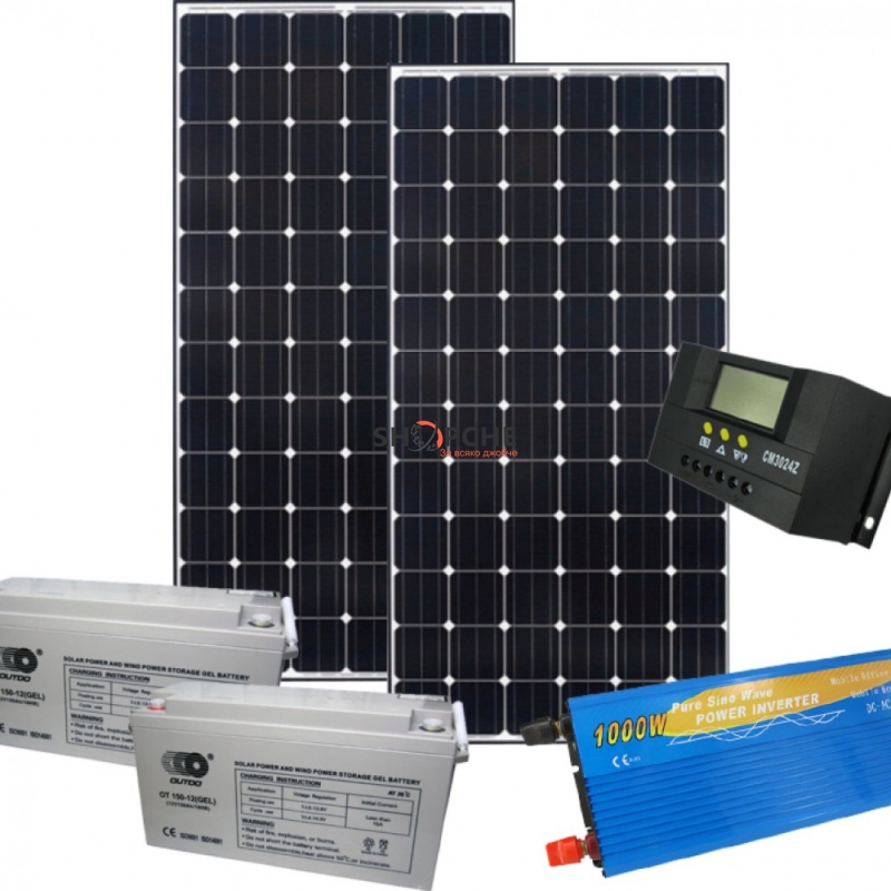 Тази фотоволтаична система включваща соларени панели 500Wp, соларен контролер 30A с LCD дисплей, акумулаторен блок 24V 150Ah и синусоидален инвертор - преобразувател на напрежение от 24V на 220V с мощност 1000W, Ви гарантира нормално битуване при условия без електрическо захранване.