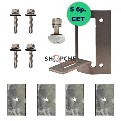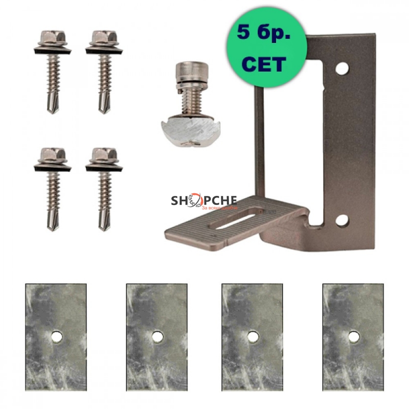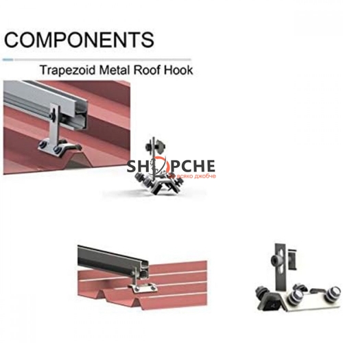 Стоманени скоби за фиксиране на фотоволтаични соларни панели върху гофриран лист за хоризонтален монтаж (опаковка от 5 броя).