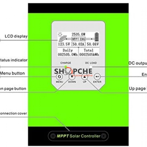 Максимална мощност на соларният панел: 60A (Автоматично превключва между 12V/24V и 48V) този контролер-регулатор е предназначен за зареждане на акумулатори, чрез соларен панел. Когато напрежението на батерията не е достатъчно, контролерът играе роля на защита, като не позволява напрежението да падне под необходимото за зареждане на акумулаторът.