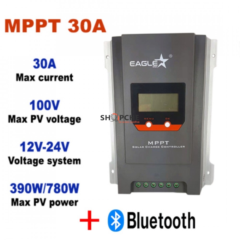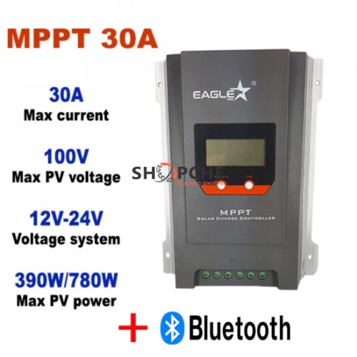 MPPT контролер за соларна система, Bluetooth соларен контролер, 30A соларен контролер, управление на соларна енергия, 12V/24V соларен контролер, оф-грид соларна система, Eaglestar соларен контролер.