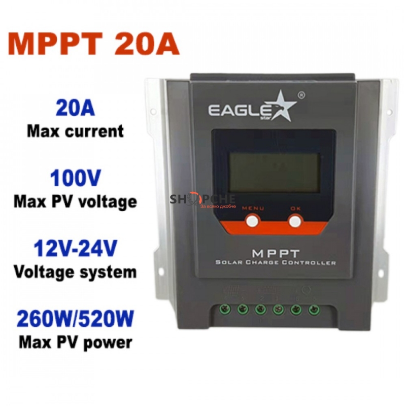 👉 Присъедини се към Viber общносттаMPPT Контролер за фотоволтаични панели 12/24 волта 20 ампера