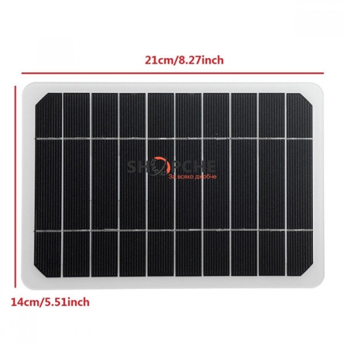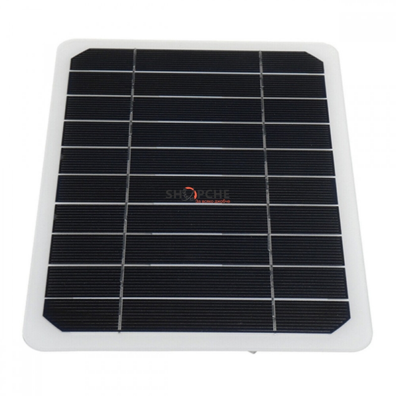 👉 Присъедини се към Viber общносттаСлънчевият панел 5V 5W е малък, преносим, предназначен да генерира енергия от слънчева светлина и да зарежда USB-съвместими устройства, като например охранителна камера с вградена батерия, преносима външна батерия power bank и други електронни устройства.