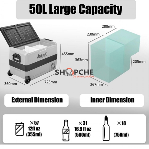 Голям капацитет: 50L обем, идеален за съхранение на различни храни и предмети.