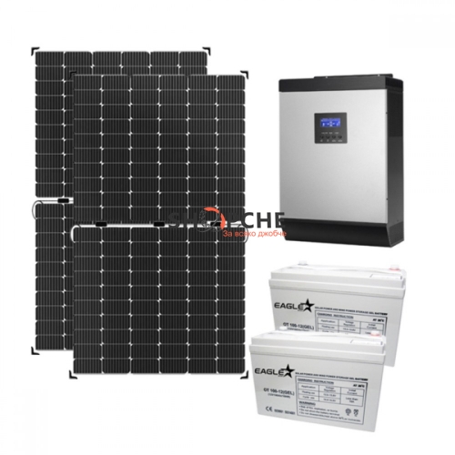 👉 Присъедини се към Viber общността1080Wp Монофазна хибридна фотоволтаична система с гелов акумулатор 24V 100Ah (2x100Ah), MPPT контролер 60A, хибриден инветор 2400W