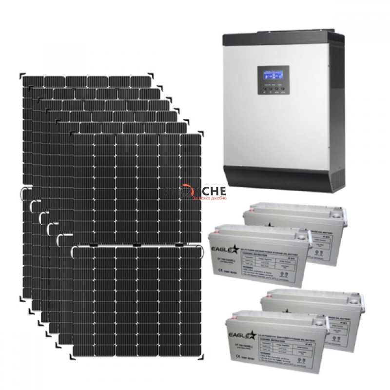 👉 Присъедини се към Viber общността3240Wp Монофазна хибридна фотоволтаична система с гелов акумулатор 48V 150Ah (4x150Ah), MPPT контролер 80A, хибриден инветор 4000W