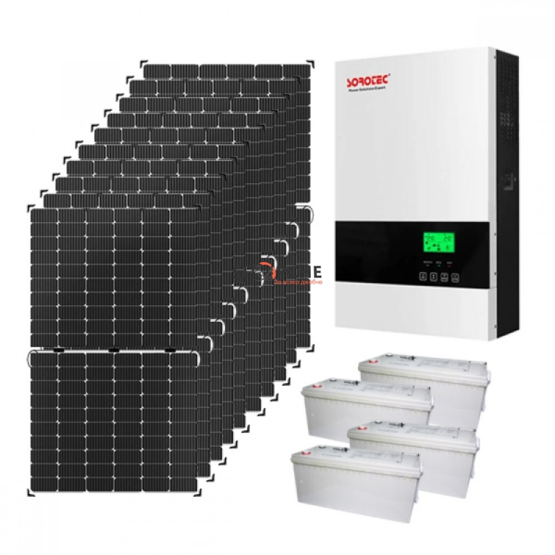 👉 Присъедини се към Viber общността5400Wp Монофазна хибридна фотоволтаична система с гелов акумулатор 48V 200Ah (4x200Ah), MPPT контролер 100A, хибриден инветор 5500W