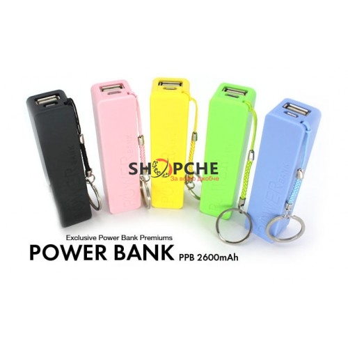 - Външна батерия 2600 mAh за зареждане на телефон, таблет