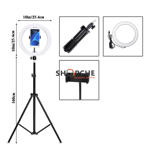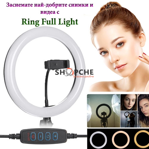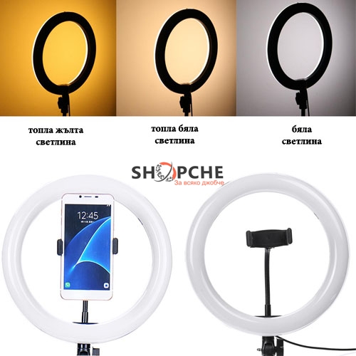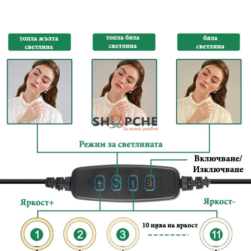 LED ринг лампата е с 3 режима на осветление и 10 нива на регулиране на яркостта на светлината.