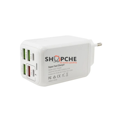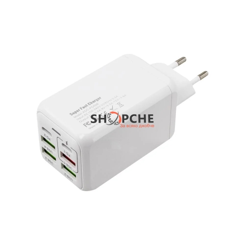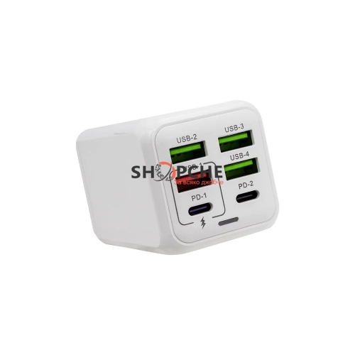 Множество портове: Оборудван с 4 USB порта и 2 PD (Power Delivery) порта за разнообразни опции за зареждане.